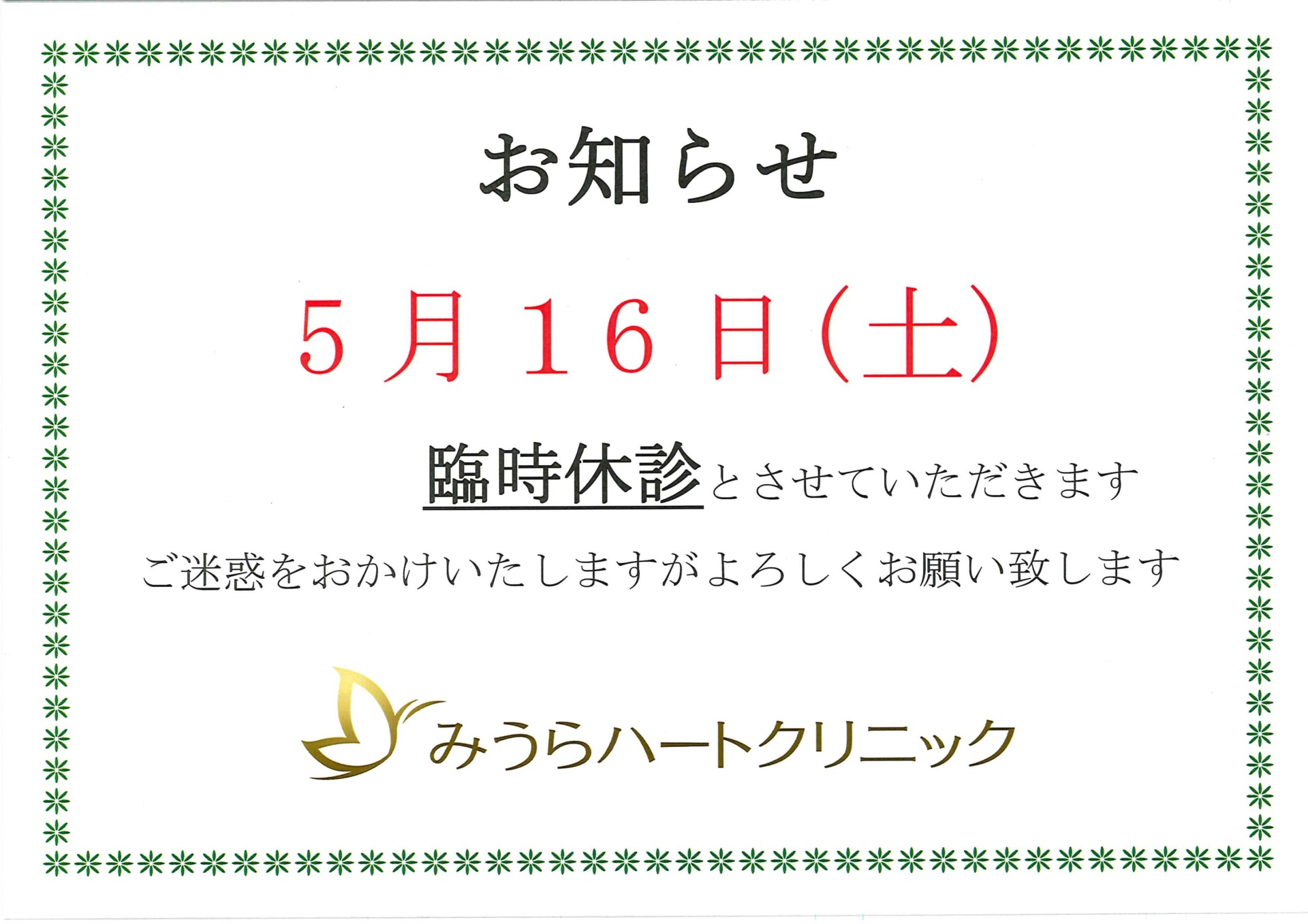 休診のお知らせ